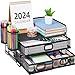 • Marbrasse 3 Tier Mesh Desk Organizer with Drawer, Multi-Functional Desk Organizers and Accessories, Paper Letter Organizer with 2 Pen Holder for Home Office Supplies (Black)